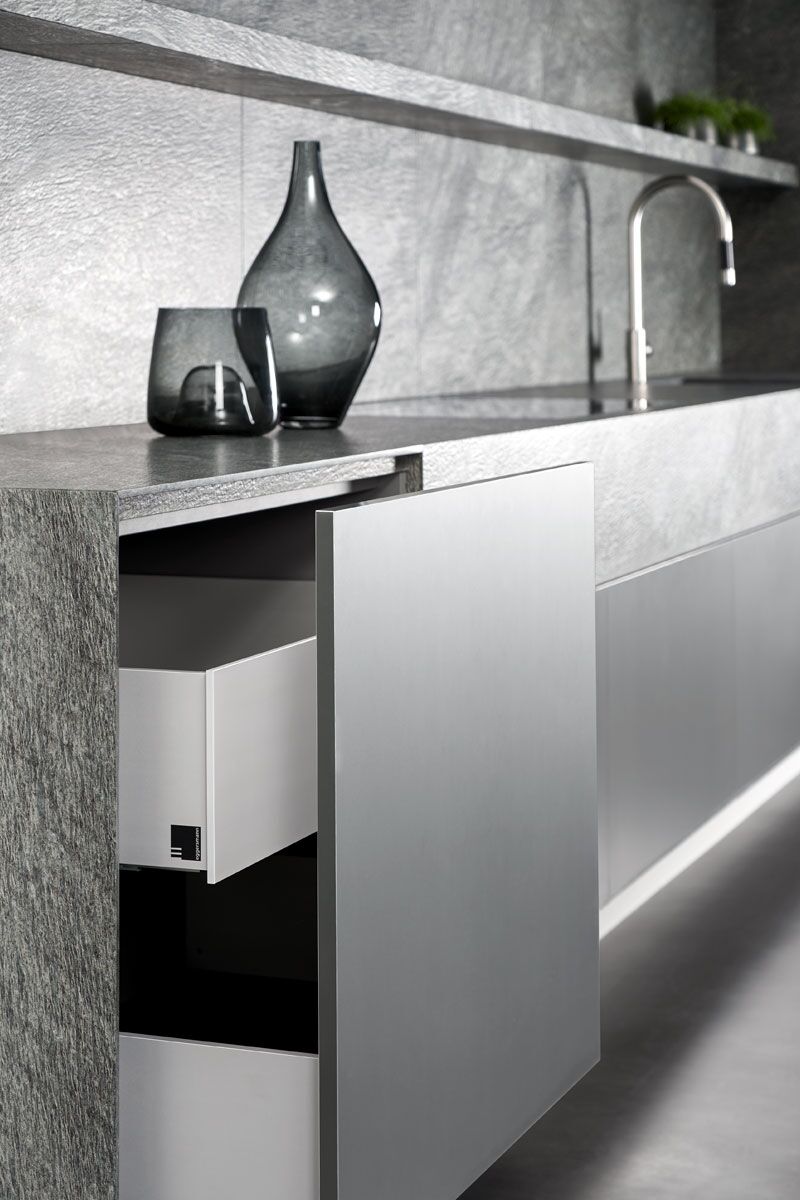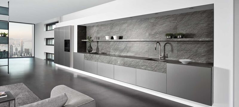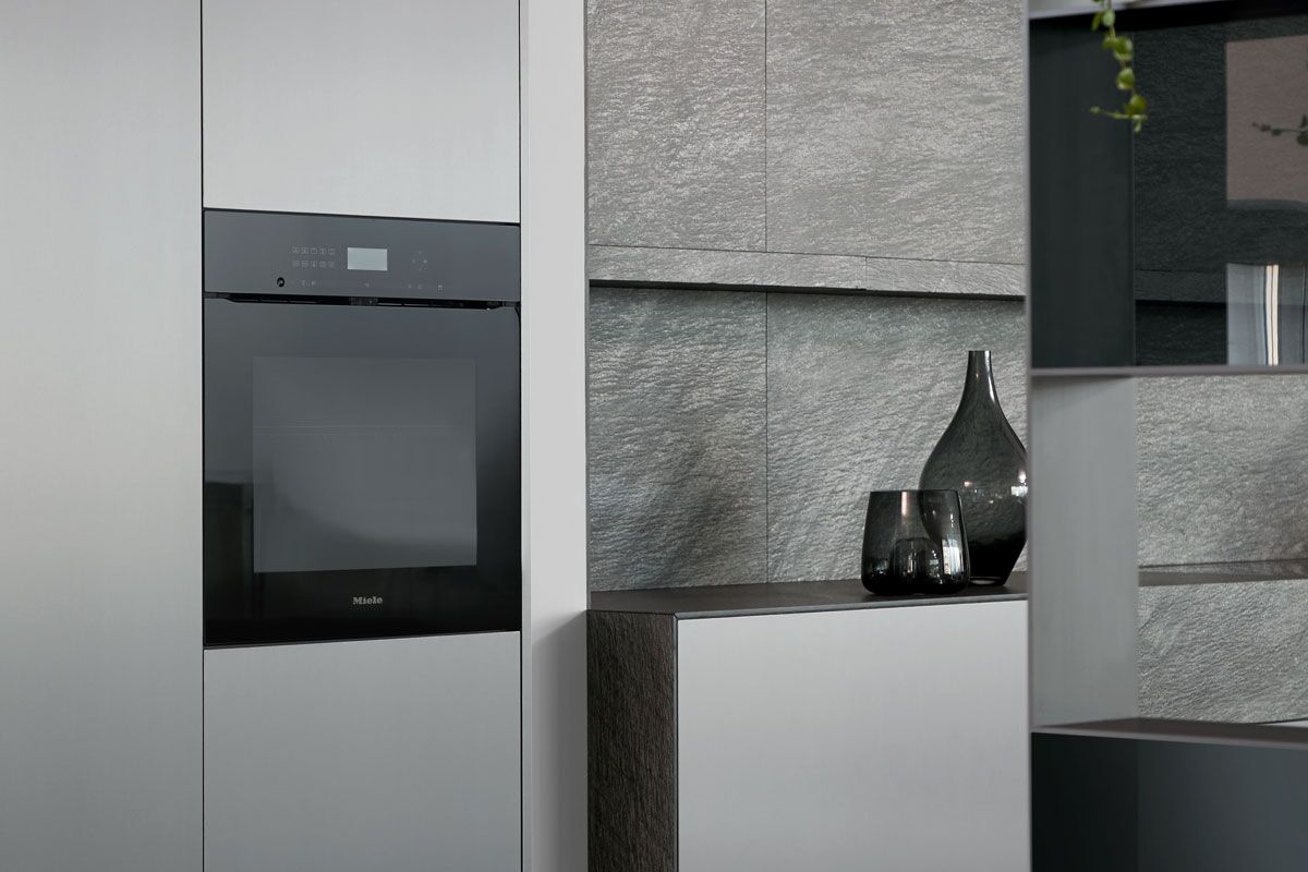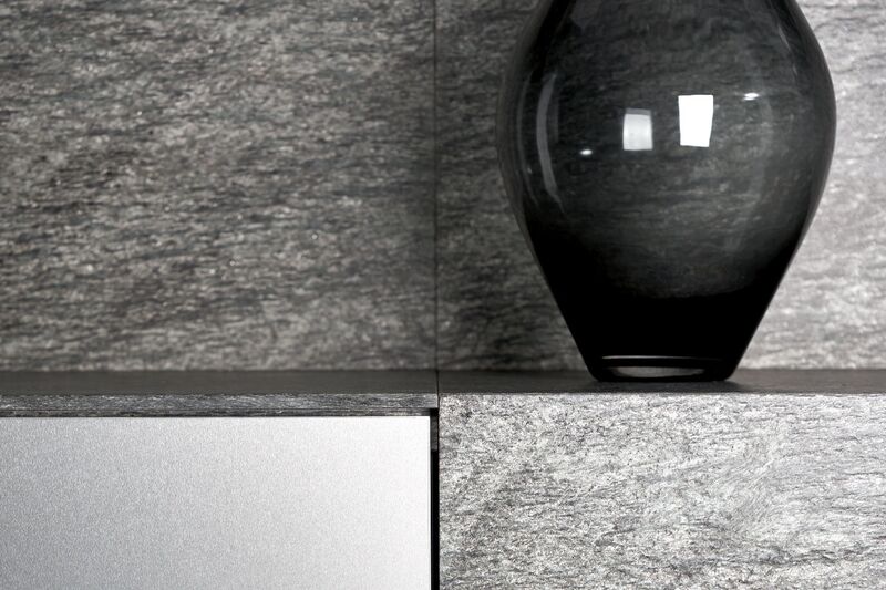 Fronten Aluminium grau eloxiert – Flächen Quarzit Beola Nera