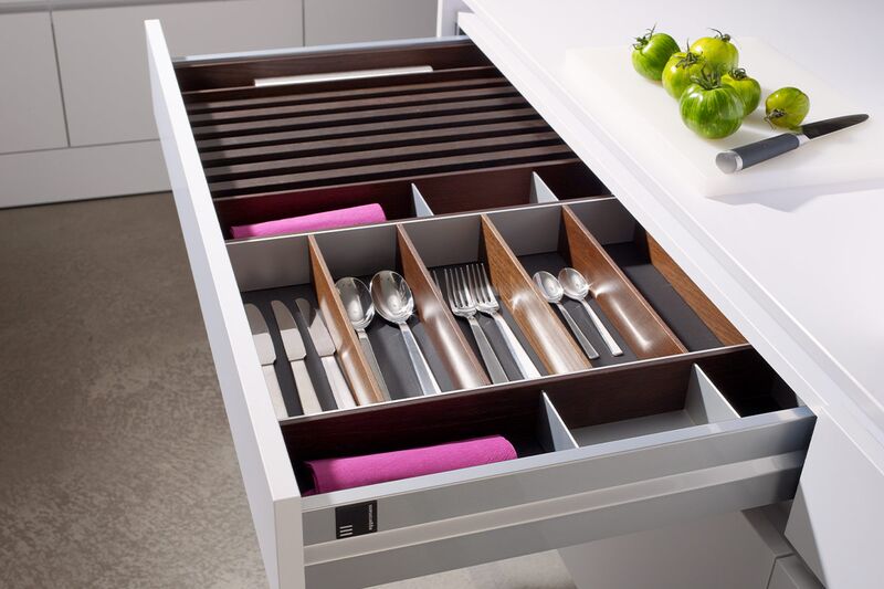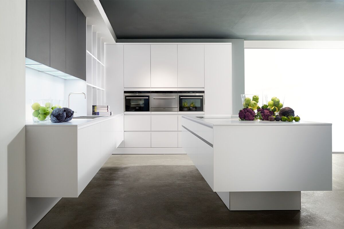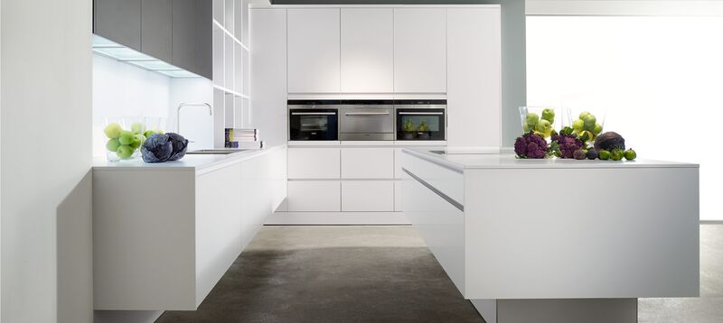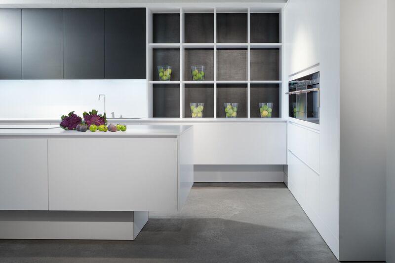 Alle Oberflächen Laminat – graue Schranktüren lackiertes Glas