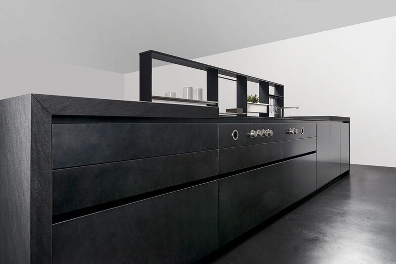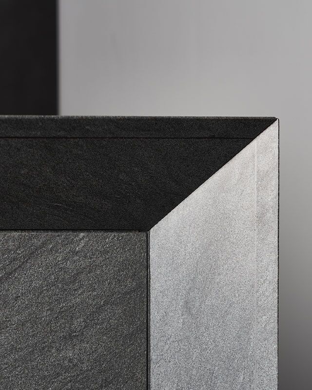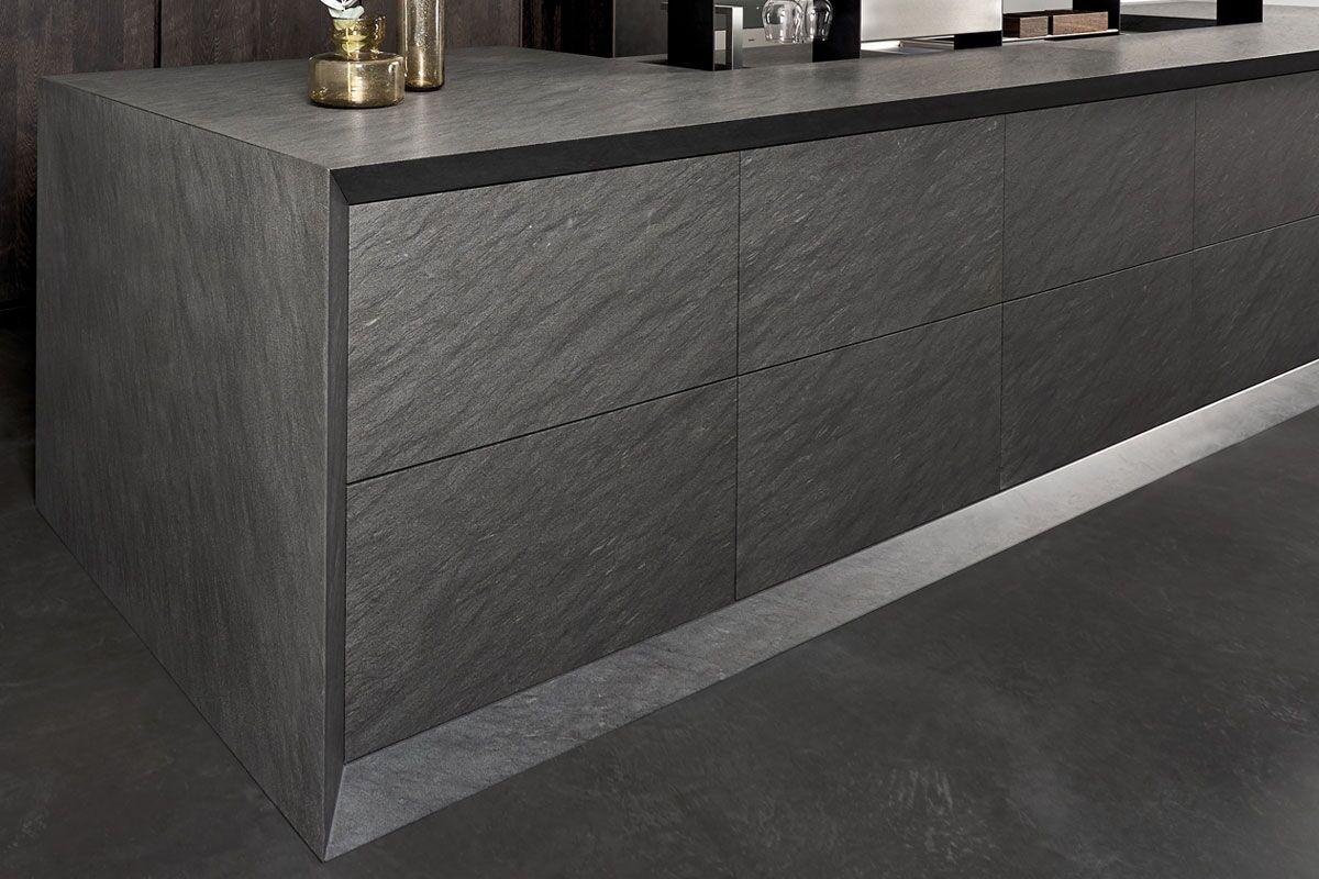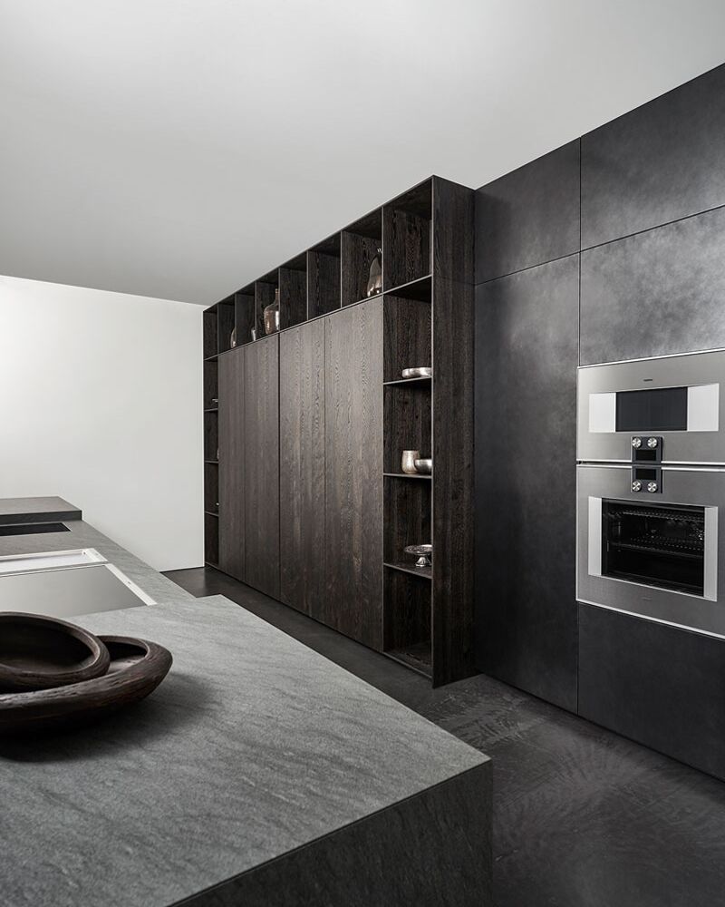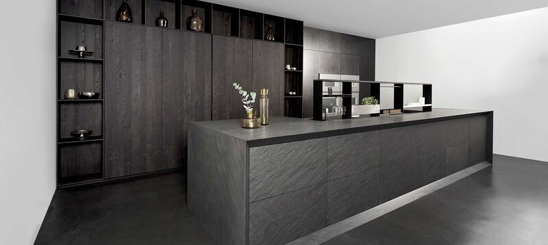 Quarzite Carbono – Effect lacquer steelgrey – Oak veneer black-brown