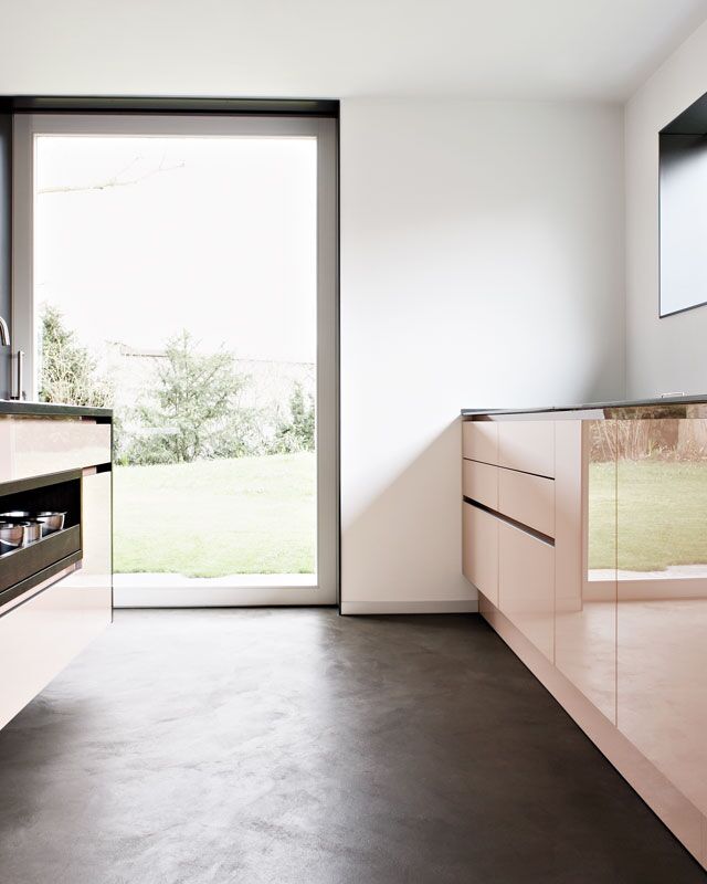 The kitchen fronts, on the other hand, are made of real glass – according to the NCS color system.