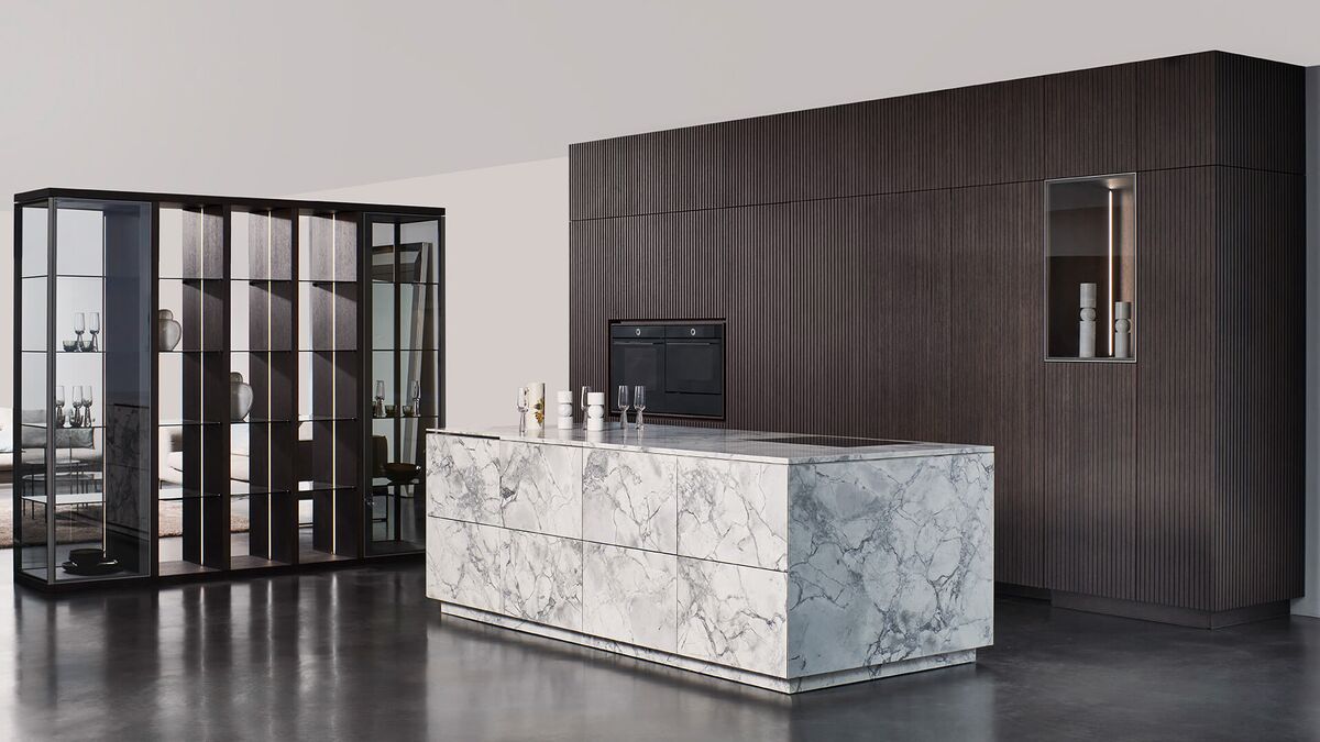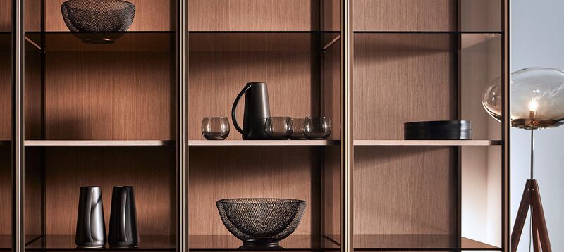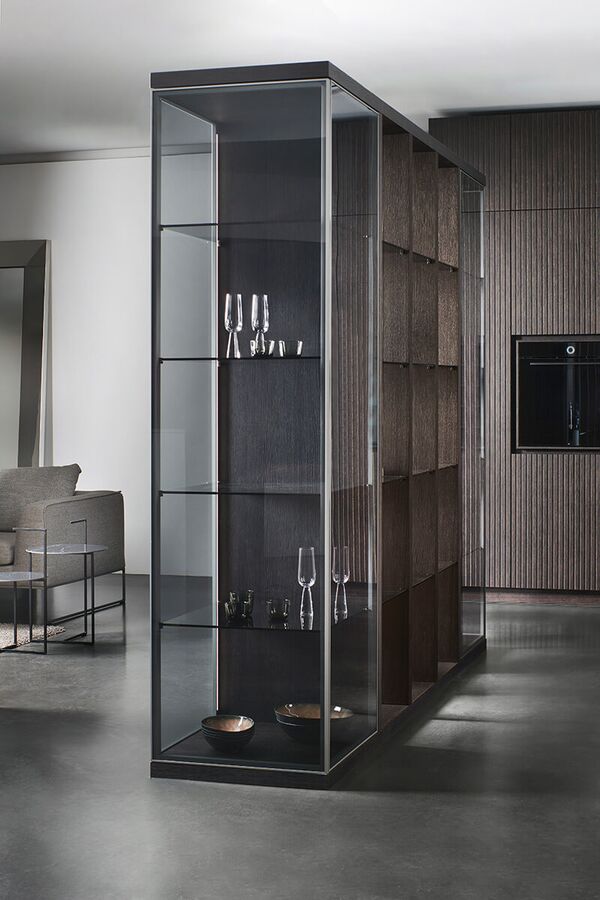 Inspirée des meubles d’intérieur et vitrines classiques, glance est une gamme de corps en verre créée pour apporter de la transparence afin de rompre avec le monolithisme des cuisines et donner vie à d’élégantes compositions mêlant espaces ouverts et fermés.