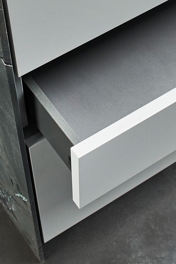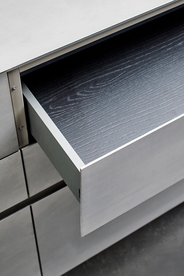 Basierend auf einer einheitlichen Führungsplattform von Hettich steht das neue Schubkastensystem in den drei puristischen Ausführungen EBX.aluminum, EBX.steel und EBX.wood zur Verfügung.