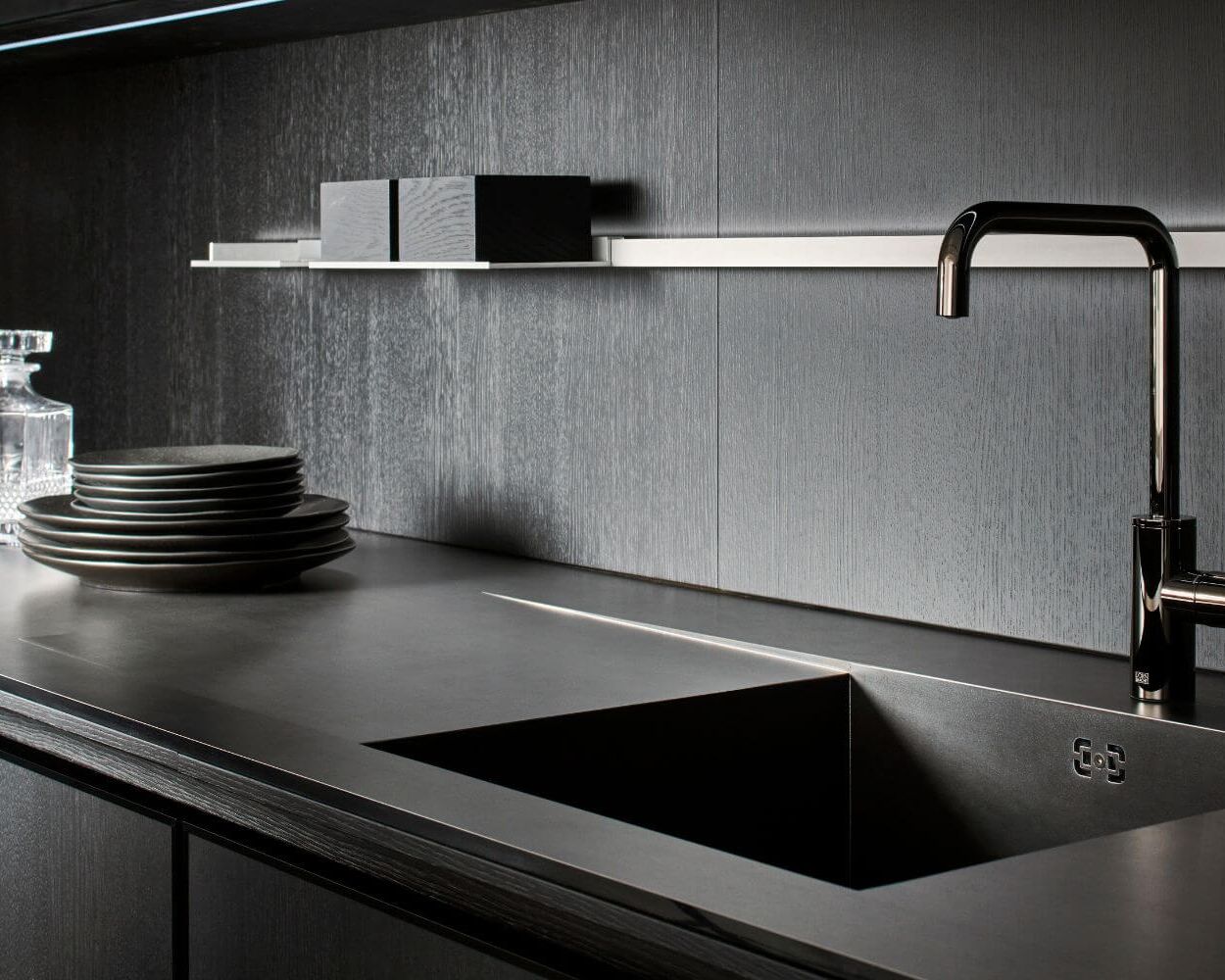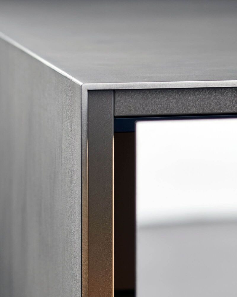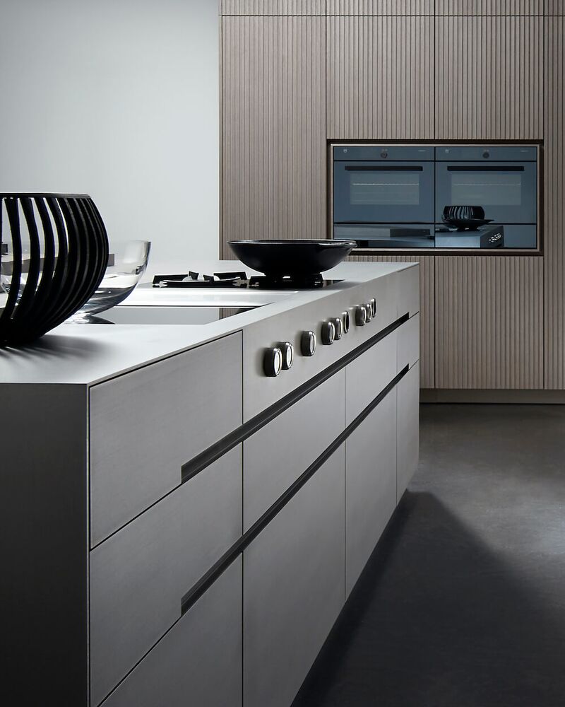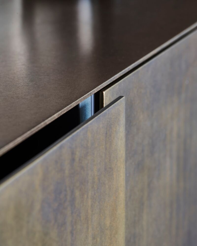 We use the finest craftsmanship to process these materials into delicate fronts with precise handle notches. This creates a monolithic kitchen architecture with a greatly reduced joint pattern - clear, powerful and yet lively.