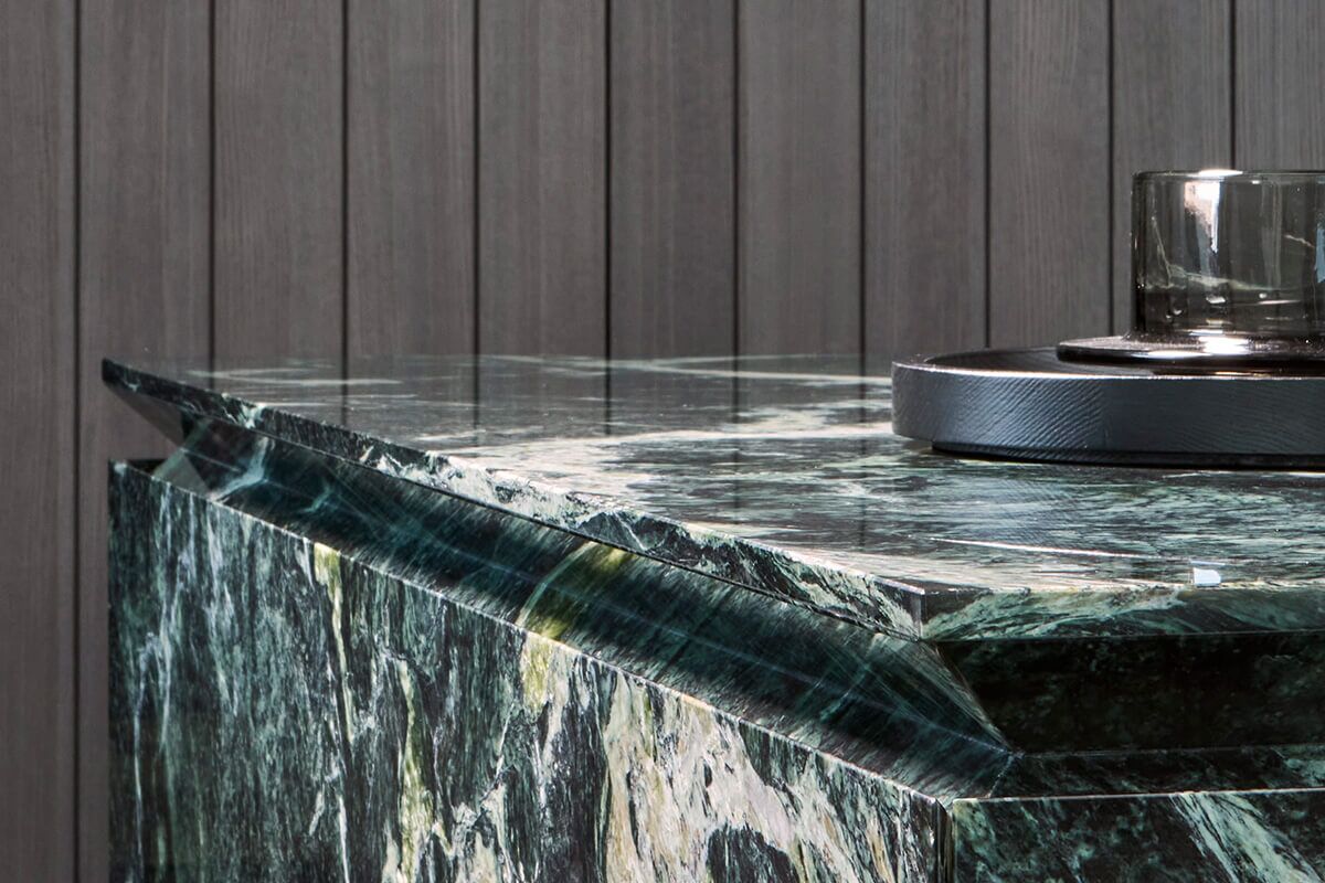 We work natural stone, such as the Tauern Greenquartzite shown here, with perfect attention to detail to achieve consistent homogeneity of all relevant surfaces.