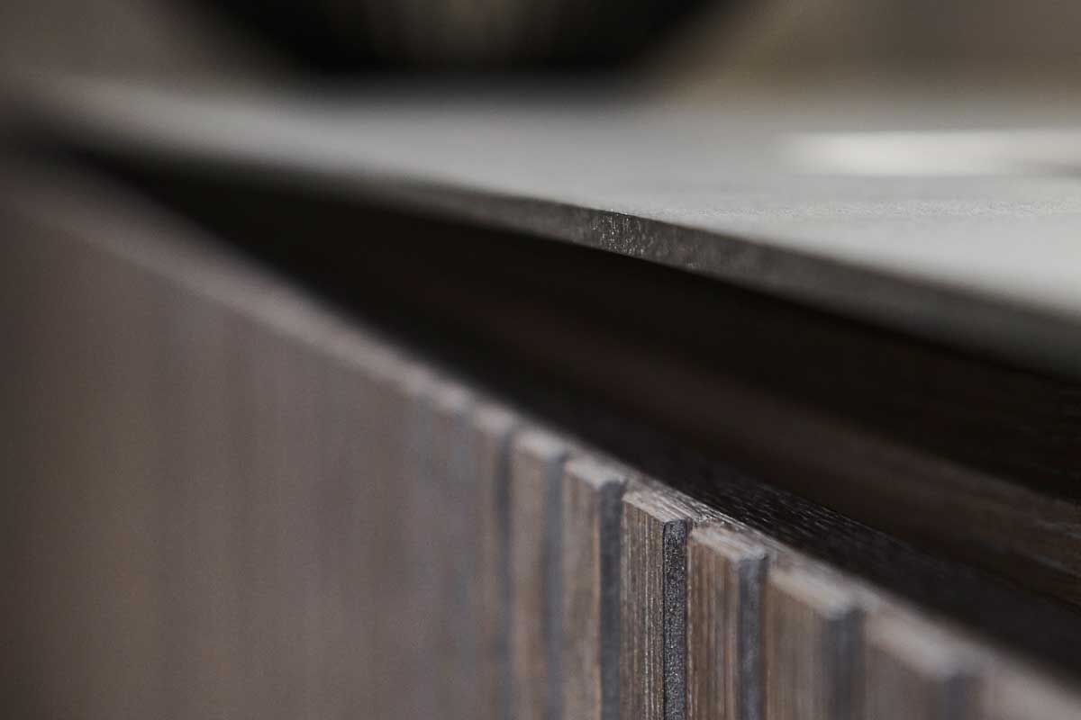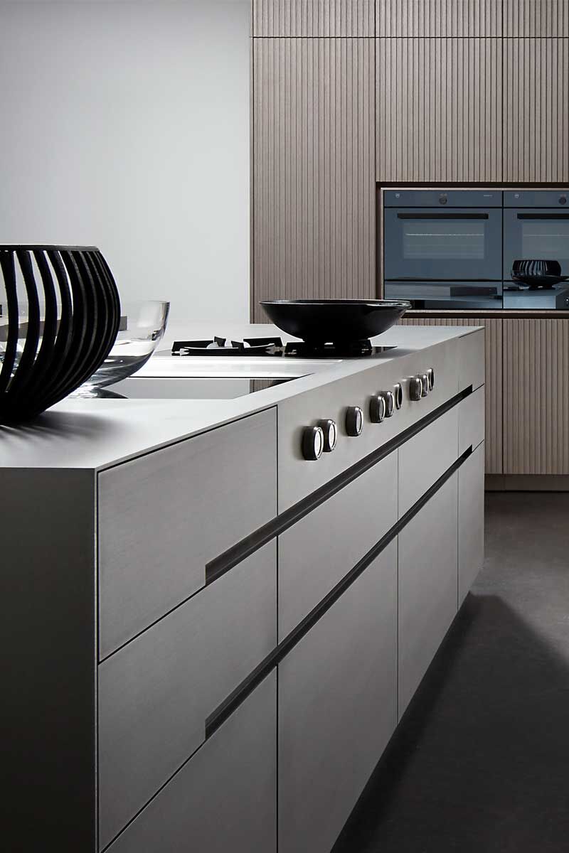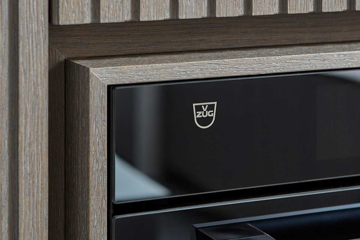Frentes y barra de roble plateado tratada con aceite – encimeras silverTouch de acero inoxidable