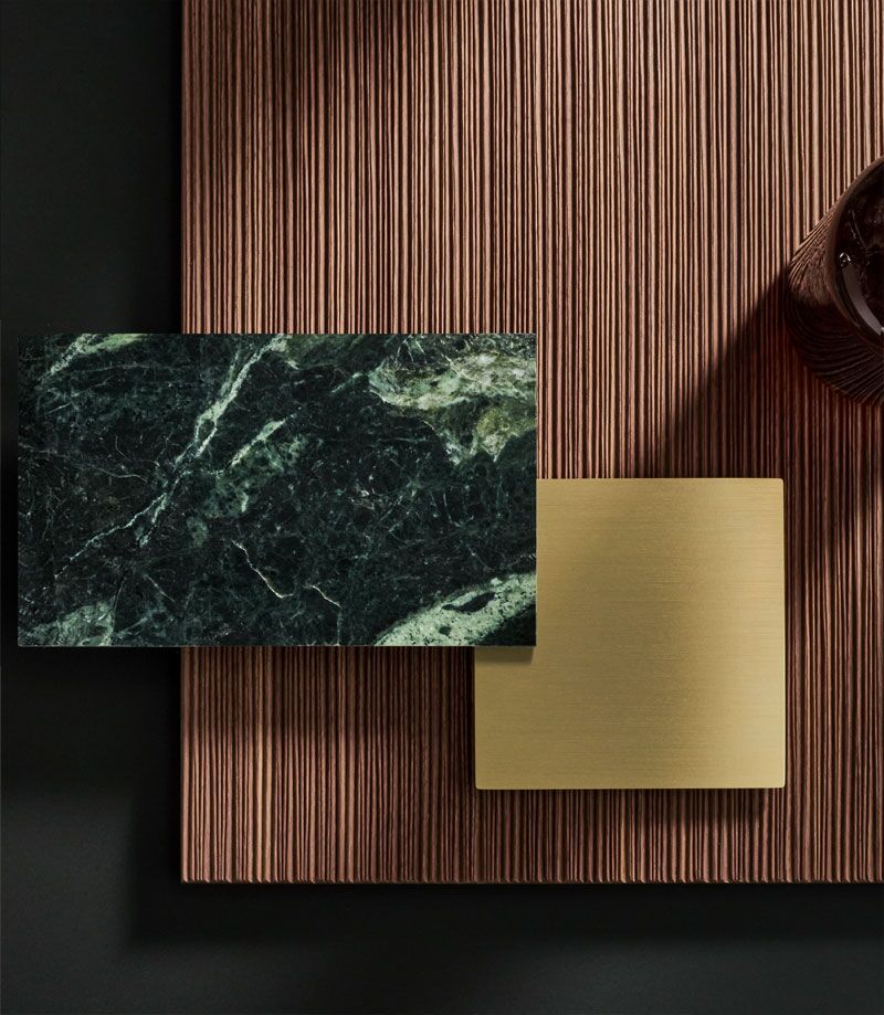 El chapeado de madera en tonos cálidos y oscuros térreos acentúan el carácter hogareño. Se crean contrastes especiales mediante combinaciones con piedra natural o metales como el acero negro y el latón.